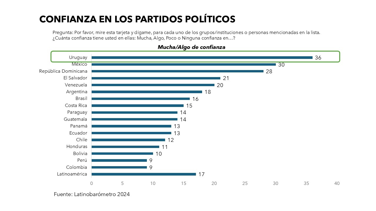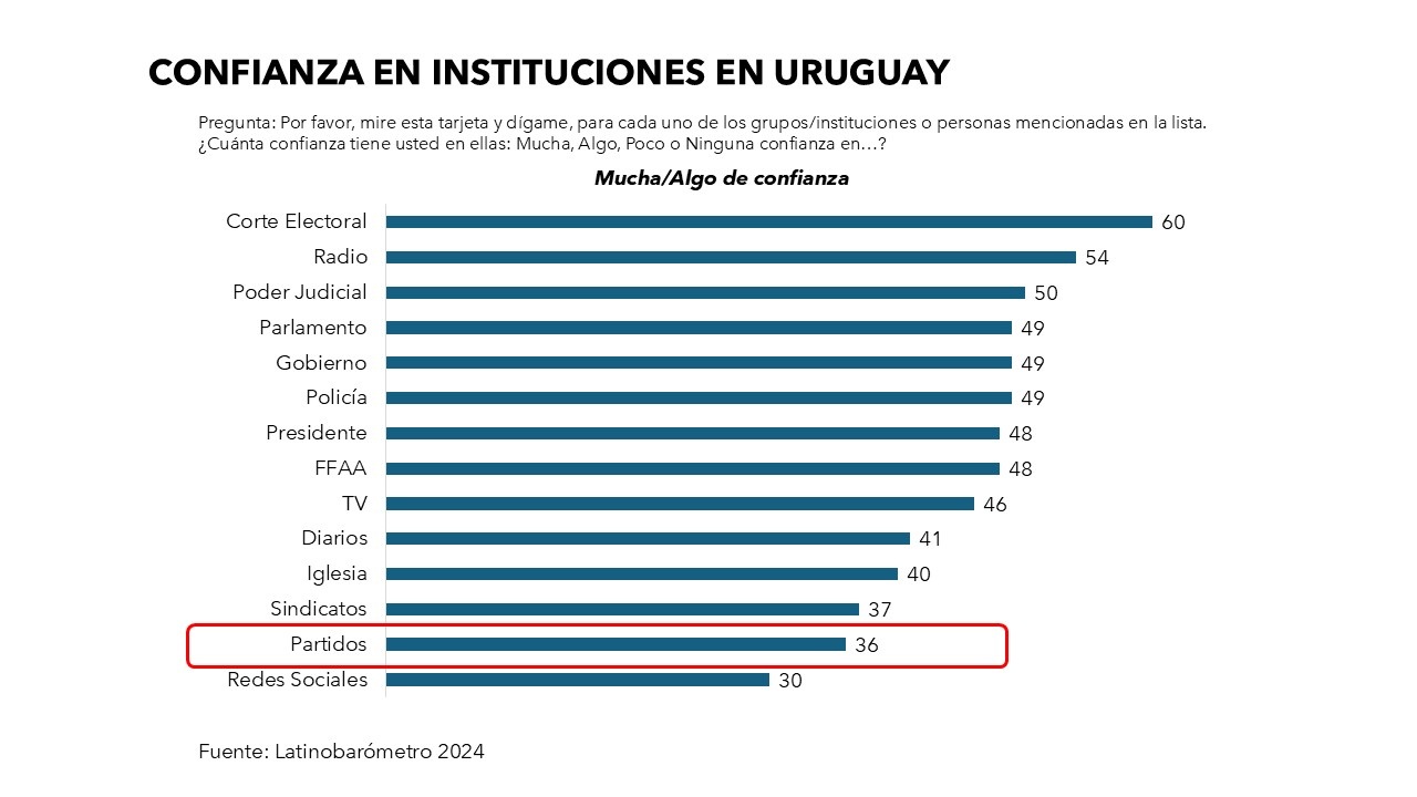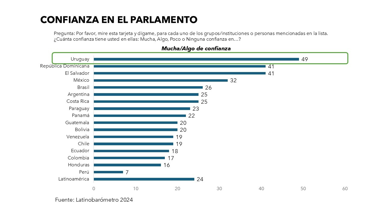 Análisis comparativo sobre la satisfacción que tiene la población con instituciones y la democracia. Nuestro país encabeza el ranking de satisfacción con la democracia entre los países de la región. Dos tercios de la población está satisfecha con la democracia.