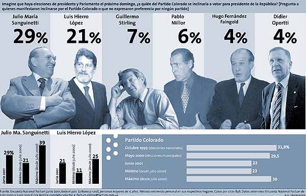 Sanguinetti. El Partido Colorado capta hoy el 23% del